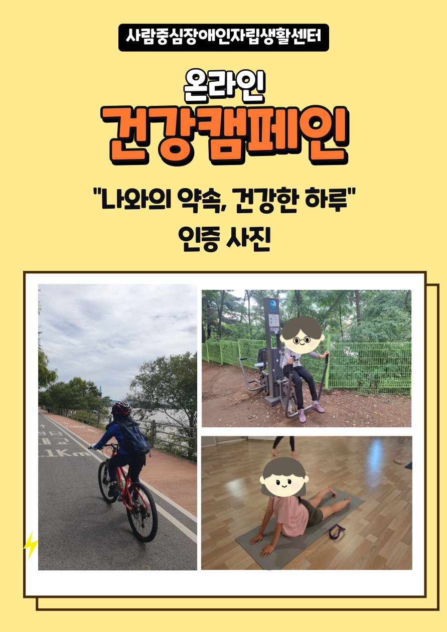 1. 사람중심장애인자립생활센터(소장 이상희, 이하 사람중심IL센터)는 9월 한 달간 온라인 건강캠페인을 진행했다. 이번 캠페인은 장애인의 건강생활 실천을 독려하고 건강권 인식 확산에 기여하기 위해 마련되었다.