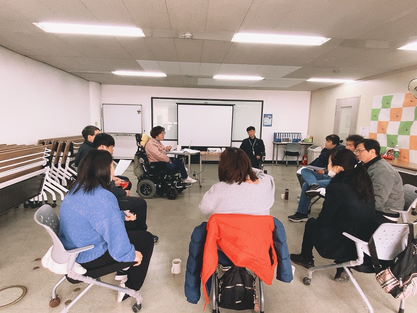 집단동료상담은 기초/심화 과정으로 나누어 6~10명의 장애인 동료들이 집단으로 이론강의과 1대1 세션, 싱크앤리슨 등의 기법을 사용하여 주제별(자립생활, 동료, 장애에 대하여, 인간의 본질, 감정해방 역할극 등)로 이야기를 나누며 지지그룹을 만들어가는 활동입니다.