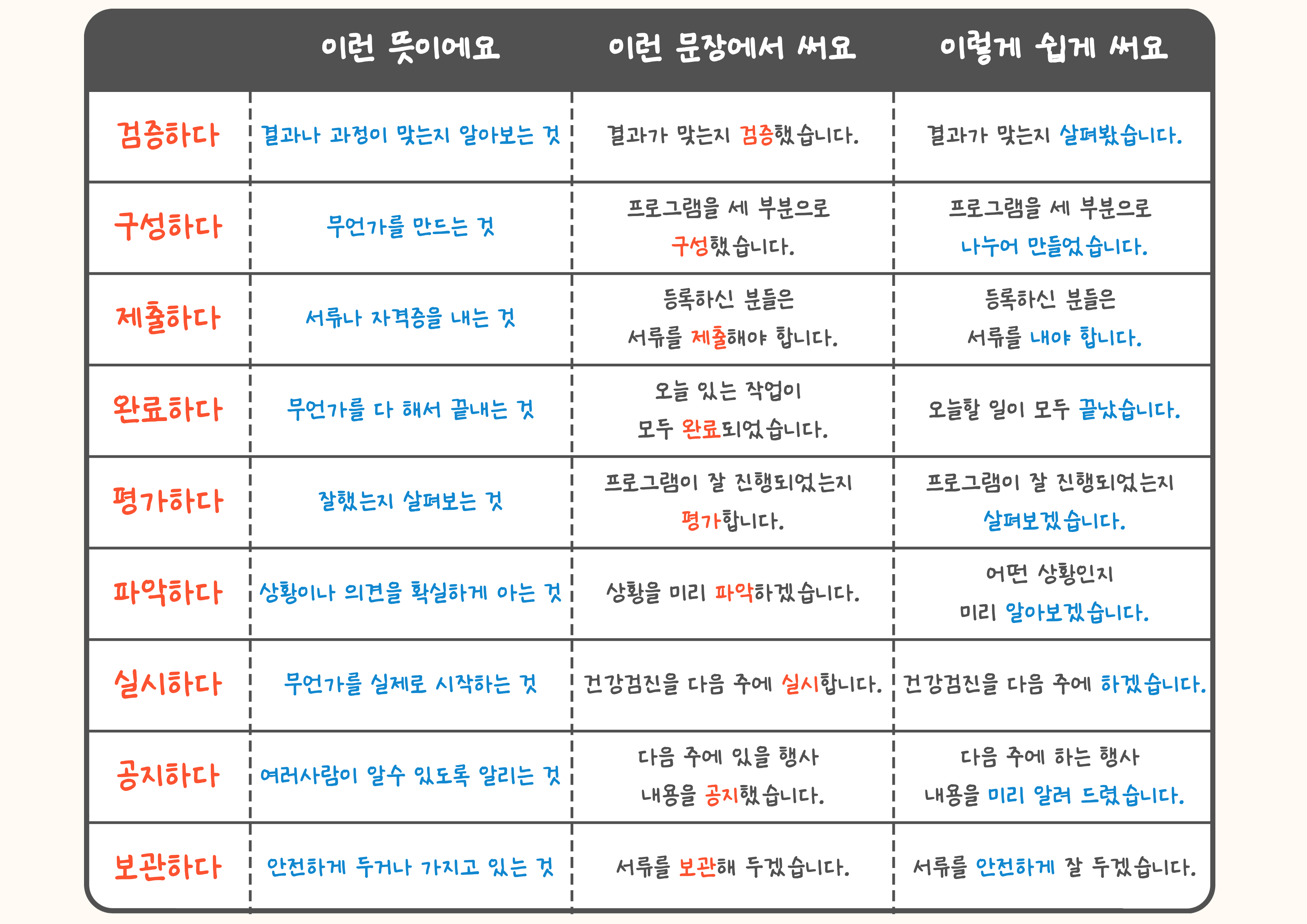 바꾼 단어 : 확대 운영, 계획안, 활용하다, 발급하다, 절차, 확대시행, 검증하다, 구성하다, 제출하다, 완료하다, 평가하다, 파악하다, 실시하다, 공지하다, 보관하다.