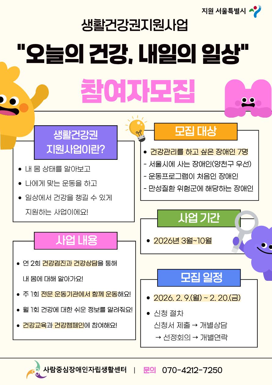 - 서울시 거주 장애인(양천구 우선)