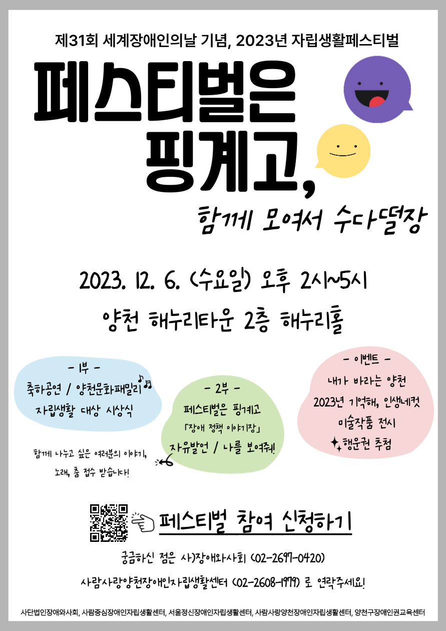○ 문의: 장애와사회(02-2697-0420), 사람사랑양천장애인자립생활센터(02-2608-1979)
